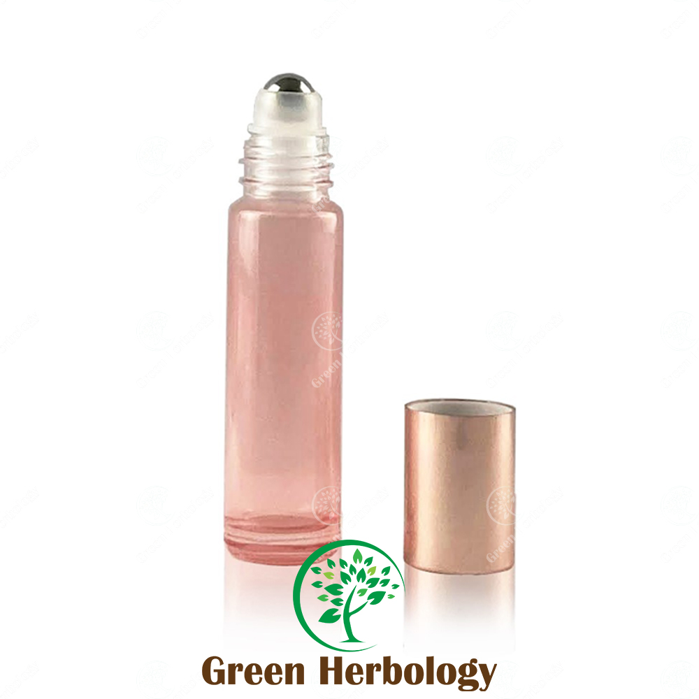 F01B Pink Clear Glass Roller Bottle with Rose Gold Cap 10ml