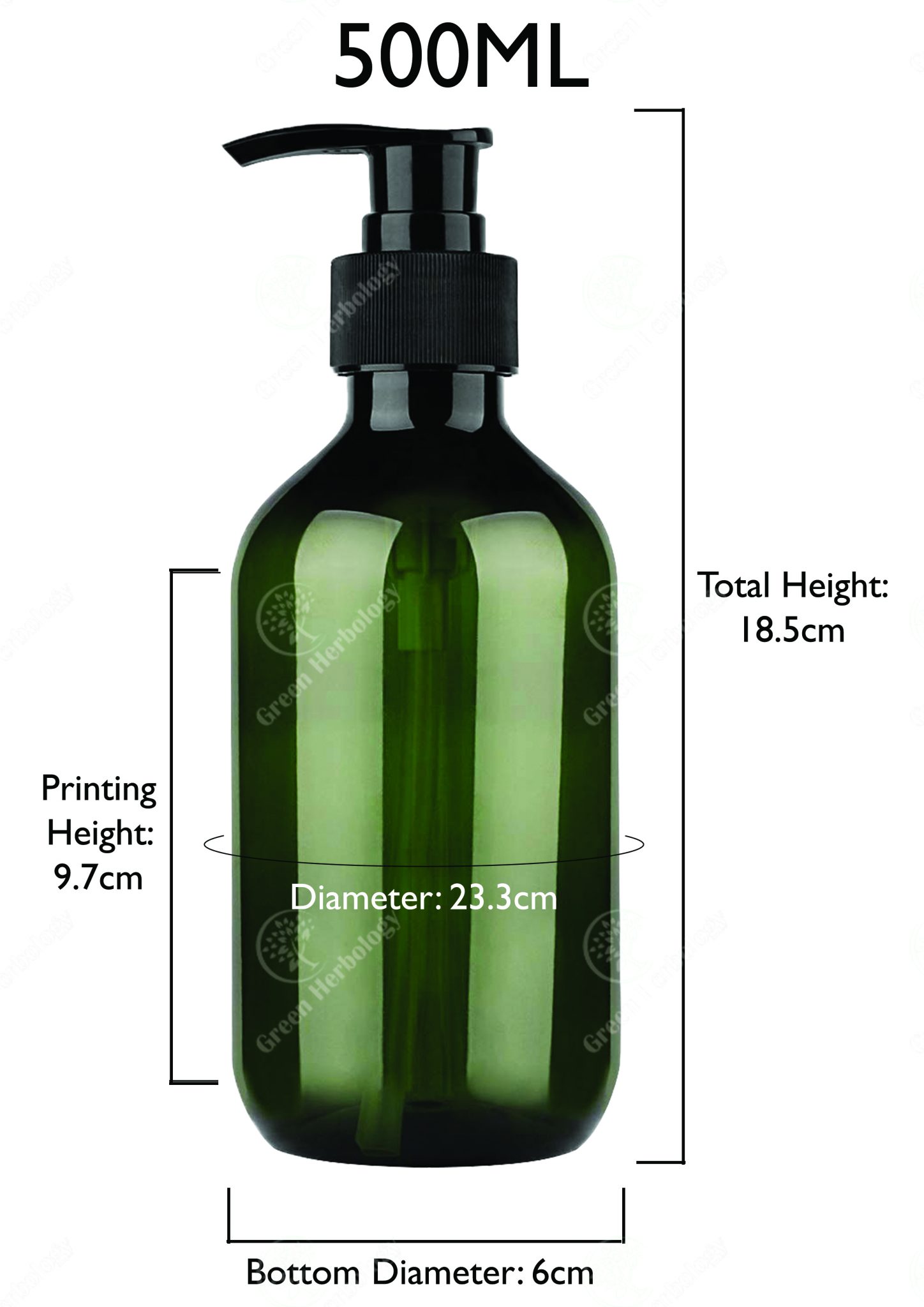 500ML Green PET Plastic Round Shoulder Bottle with Black Pump Cap