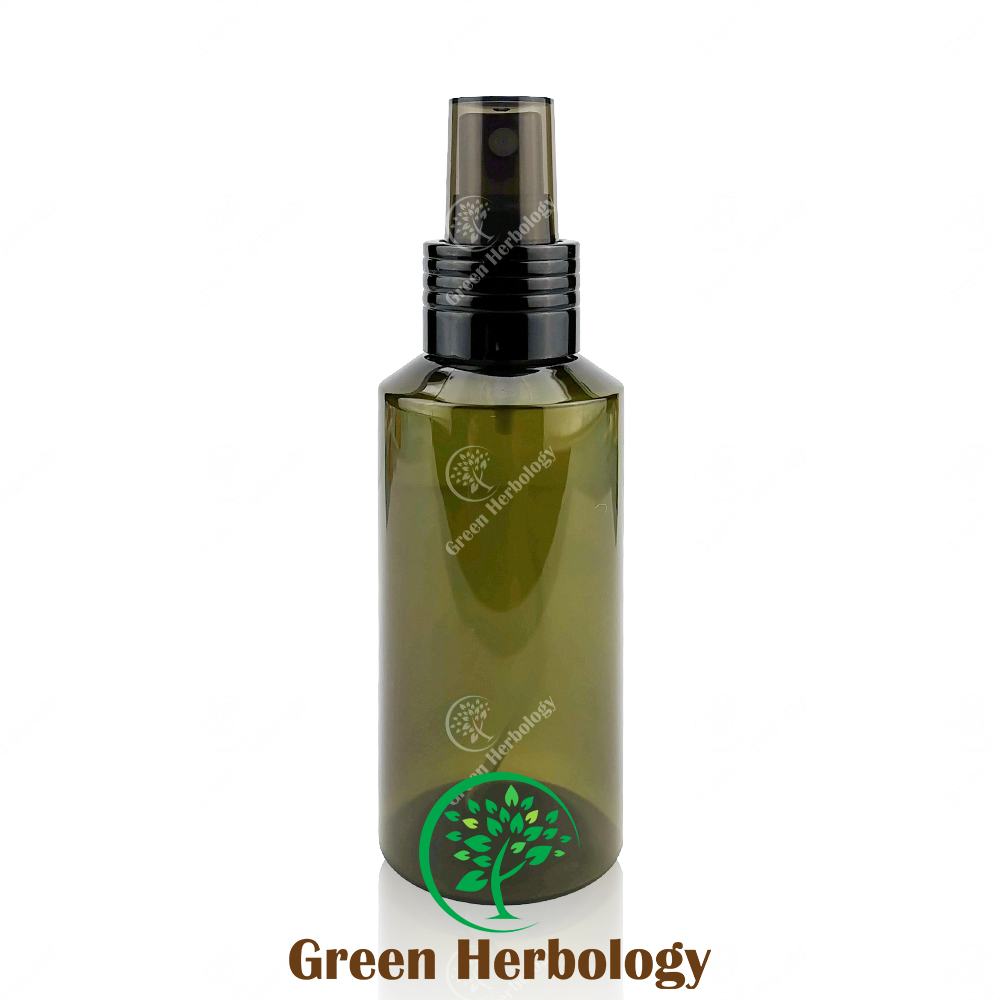 100ML PET Plastic Tilted Shoulder Olive Green Bottle with Spray Cap
