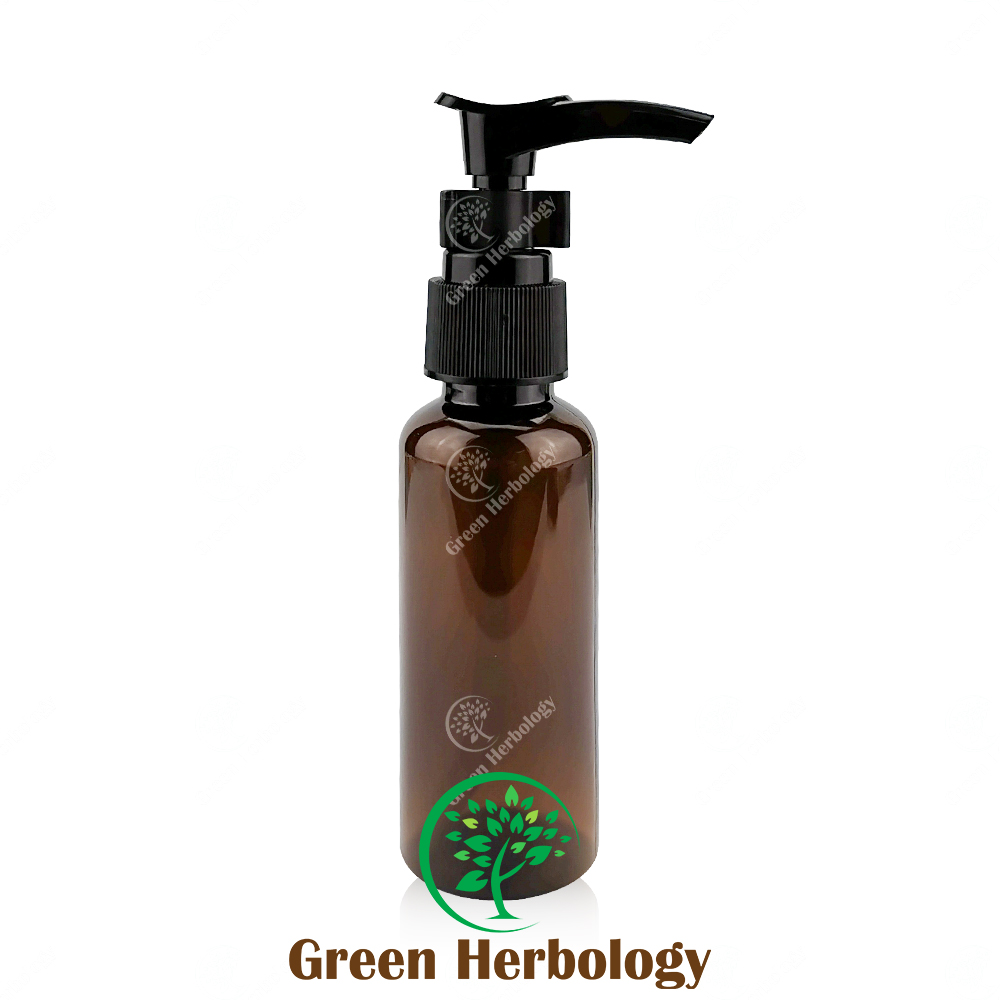 B01B PET Plastic Round Shoulder Amber Bottle with Pump Cap 50ML